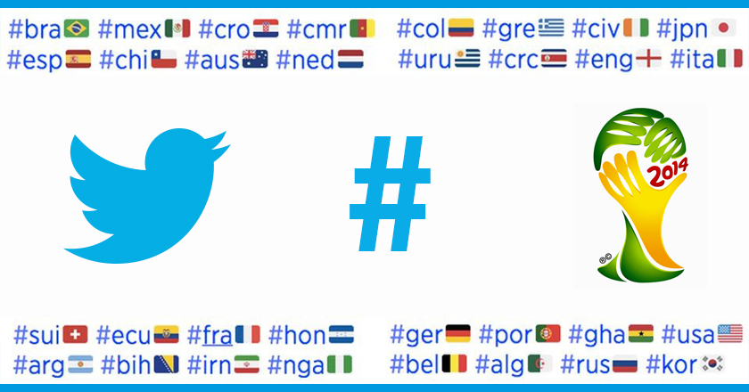 Gebruikers van Twitter (twitteraars) kunnen tijdens het WK 2014 hun tweets opvrolijken met de vlag van hun land of favoriete team. Alle 32 WK-landen hebben een speciale afkorting van drie letters. Als je die achter een hashtag (#) plaatst, verschijnt op Twitter de vlag van dat land in je tweet. Zo’n emoticon in de vorm van een vlag is dus een hashflag.